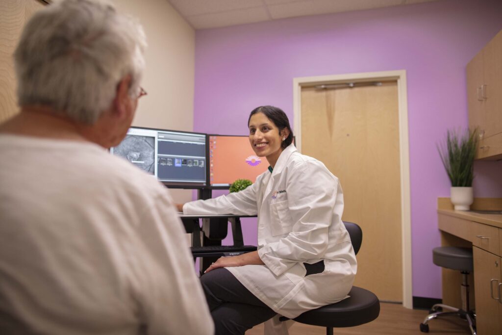 One of our most popular services is a five-minute diabetes eye test which uses artificial intelligence (AI) technology to scan the retina. After the machine takes pictures of the back of the eye, the algorithm can determine if diabetes has started to affect the back of the eye, and the patient knows in just a few minutes what their next steps are. For many people they can get an annual test in just a few minutes, without getting dilated – a vast improvement over the time it used to take.